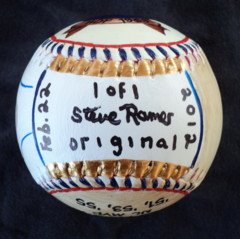 Side six, which is the bottom of the baseball, has my signature along with the date that this Legends Hand Painted Baseball was completed and trimmed with gold. Also you will see "1 of 1". This means that this is number one of only one created. This is a one of a kind piece of art. There will never be another exactly like it.