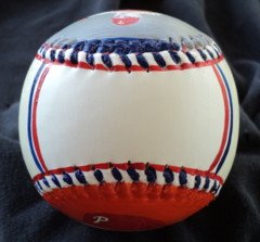 Side five, which is the top of the baseball, has been left blank for an autograph.