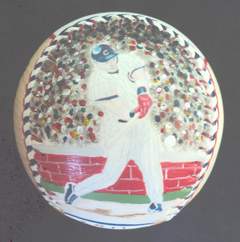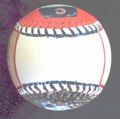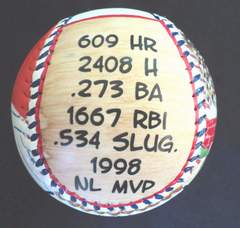 This Great American Sammy Sosa Baseball features my two original paintings of Slammin' Sammy. A certificate of authenticity comes with your baseball so that you know it's an original Great American Baseball.This Baseball Is Available The front of the ball has my close up painting of Sammy Sosa. Click here for a closer look.