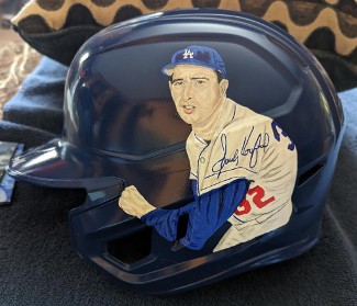 The right side of the helmet has my painting of Sandy Koufax with his simulated autograph. Click here for a closer look
