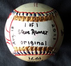 Side six, which is the bottom of the baseball, has my signature along with the date that this Legends Hand Painted Baseball was completed and trimmed with gold. Also you will see "1 of 1". This means that this is number one of only one created. This is a one of a kind piece of art. There will never be another exactly like it.