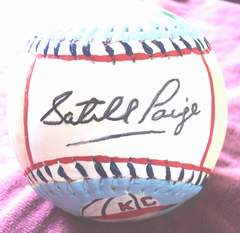 Side five, which is the top of the baseball, has Satchel Paige's hand painted autograph.