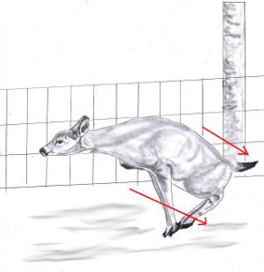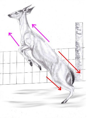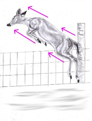 Freddie Freeman is clearly “seeing” the pitcher with both eyes. I don’t know if Freeman is a left or right eye dominant person, but, it’s crucial to be looking at the pitcher with your dominant eye. If your dominant eye is your rear eye in your stance (right eye for a right-handed hitter, left eye for a left-handed hitter.) you have to make an adjustment in your stance so that you are able to see the pitcher with that dominant eye. This can involve opening your entire stance toward the pitcher, or just try opening your upper torso toward the pitcher. If you are not seeing the pitch with your dominant eye, you, of course will be seeing it with your non-dominant eye. Your non-dominant eye will track the pitch until it gets to where you can see it with your dominant eye. When the flight of the pitch crosses from one eye to the other, it will tend to “jump”. Not much, but enough for you to slightly “miss” the pitch. Stretch: Here's where the Stretch comes into play. As Freeman strides with his front foot, his hips and upper body are coiling in the opposite direction. The coil with the top hand isn’t so much a “push” back toward the catcher. It’s more of a “pull back” toward the dugout behind him. Like he’s getting ready to throw a punch with his top hand. Now his muscles and Myo-Fascial tissue are stretched in opposite directions. Freeman launches his bat. The muscles and tissue that were stretched are now snapped in the same direction. Like snapping a rubber band. This is where bat speed is created. This violent snap forward is stopped by his stiff, front leg that acts like a brake. This causes even more bat speed. Even his jersey is expanding forward. (Blue Arrow). If you were driving a car 75 miles per hour and suddenly slammed on the brakes, everything in the car, including you, would be dramatically propelled forward. This “snap” is the same thing. Notice that as Freeman whips his bat through the strike zone, that his front shoulder is NOT opening toward the dugout. It’s going up and back. Coaches constantly scream at hitters to “keep their shoulder in”. Whether they know it or not, this is what it means to keep your shoulder in. I’ve heard many times on baseball broadcasts, when a smaller hitter crushes one, the broadcasters always say the same thing. “He’s soooo strong.” Actually it’s because their mechanics allow them to incorporate this “Stretch and Snap” into their swing. Hitters spend hours lifting weights to build strength. But if they are not stretching and snapping their myo-fascial tissue, the weights won’t help much. Stretch and Snap In Nature: I’ve spent a good deal of my life in the outdoors. Hunting, hiking, camping. I’ve seen whitetail deer leap high over fences from a stand still and always wondered how they could do it. Deer have thin, spindly legs, but they have large body muscles. And, just like us, they have myo-fascial tissue. Take a look at the following sequence of illustrations and we’ll see how they do it. For this deer to leap this fence, she first has to get into her “load”. Just like a hitter. Her weight gets back into her rear legs. As she begins her leap,the muscles and myo-fascial tissue of her upper and lower body are pulling in opposite directions . Just like in the rubber band example. Her rear legs are still “loaded”. This causes a great amount of stretch in her body. Now the “snap”! Her rear leg muscles have snapped forward in the same direction of her front leg muscles. Everything is going in the same direction now. The Stretch and Snap has propelled her over the fence with room to spare. Practice: I suggest you practice the Freddie Freeman sequence. Start adding this to your mechanics slowly at first. When you get to this point, hold it for a few seconds. Feel that stretch. Remember, you’re not pushing your hands back toward the catcher. It’s more of a “pull back” with your top hand.