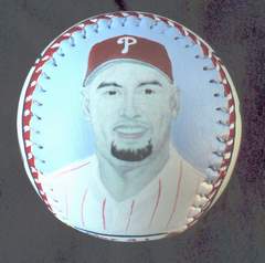 This Great American Shane Victorino Baseball features my two original paintings of the "Flyin Hawaiian". A certificate of authenticity comes with your baseball so that you know it's an original Great American Baseball.This Baseball Is Available The front of the ball has my close up painting of Shane Victorino. Click here for a closer look