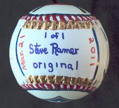 Side six, which is the bottom of the baseball, has my signature along with the date that this Great American Baseball was completed and trimmed with gold. Also you will see "1 of 1". This means that this is number one of only one created. This is a one of a kind piece of art. There will never be another exactly like it.