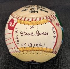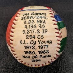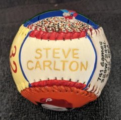 Side five, which is the top of the baseball, has my hand painted "STEVE CARLTON".