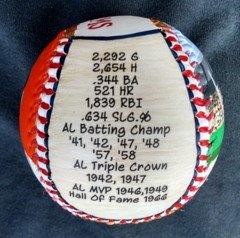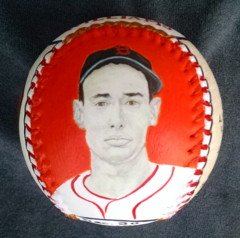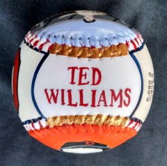 Side five, which is the top of the baseball, has TED WILLIAMS hand painted in Red Sox colors.