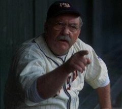 Time jumps ahead sixteen years and the 35 year old Hobbs is signed by the New York Knights. The Knights manager Pop Fisher, played by Wilford Brimley, is upset that they sent him a 35 year old rookie and refuses to play Hobbs.