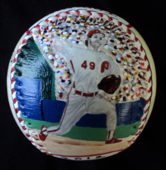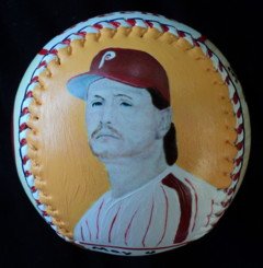 This Great American Tommy Greene Baseball features two of my original paintings. Side one is my close up painting of Tommy Greene.