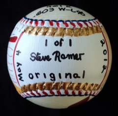 Side six, which is the bottom of the baseball, has my signature along with the date that this Great American Baseball was completed and trimmed with gold. Also you will see "1 of 1". This means that this is number one of only one created.
