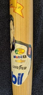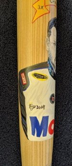 The front of the bat has my hand painted portrait of Tony Stewart. A checkered flag surrounds the top of the bat. Click here for a closer look.