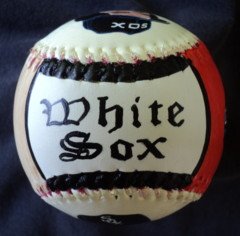 Side five, which is the top of the baseball, has has "White Sox" hand painted in team colors.