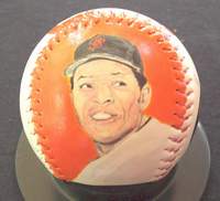 My Legends Hand Painted Willie Mays Baseball has two paintings of the "Sey Hey Kid".This Baseball Has Been Sold Side one is Willie Mays up close.