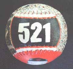 Side five, which is the top of the baseball, has Willie McCovey's all time home run total, trimmed with orange.